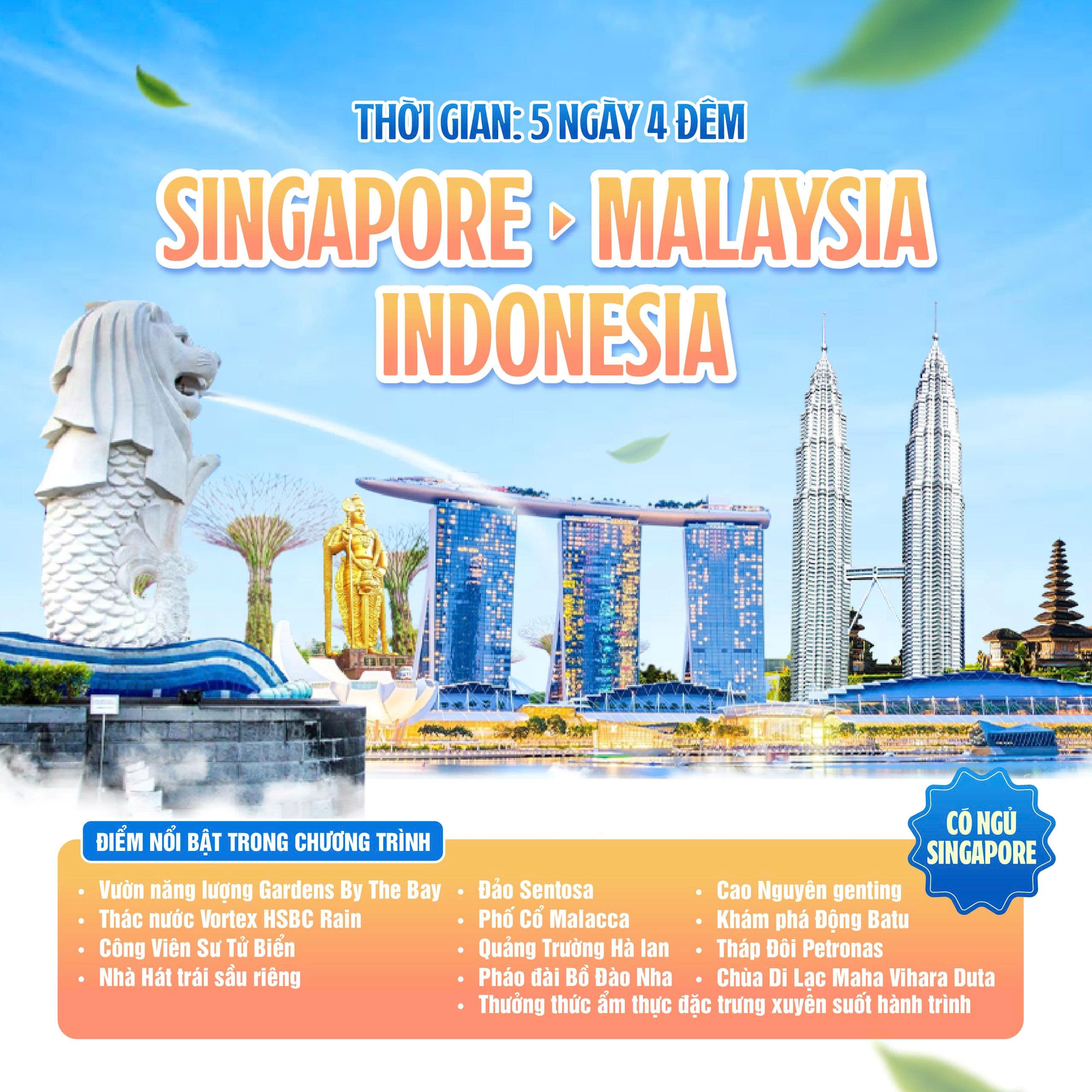 Hành trình khám phá 3 quốc gia Đông Nam Á đưa du khách trải nghiệm trọn vẹn những sắc màu văn hóa, kiến trúc và cảnh quan đặc sắc chỉ trong một chuyến đi. Từ quốc đảo Singapore hiện đại, sạch đẹp và năng động; Malaysia đa văn hóa với những công trình biểu tượng và nét giao thoa truyền thống; đến đảo Batam (Indonesia) yên bình với không gian nghỉ dưỡng thư giãn — tất cả tạo nên hành trình đa trải nghiệm hấp dẫn.