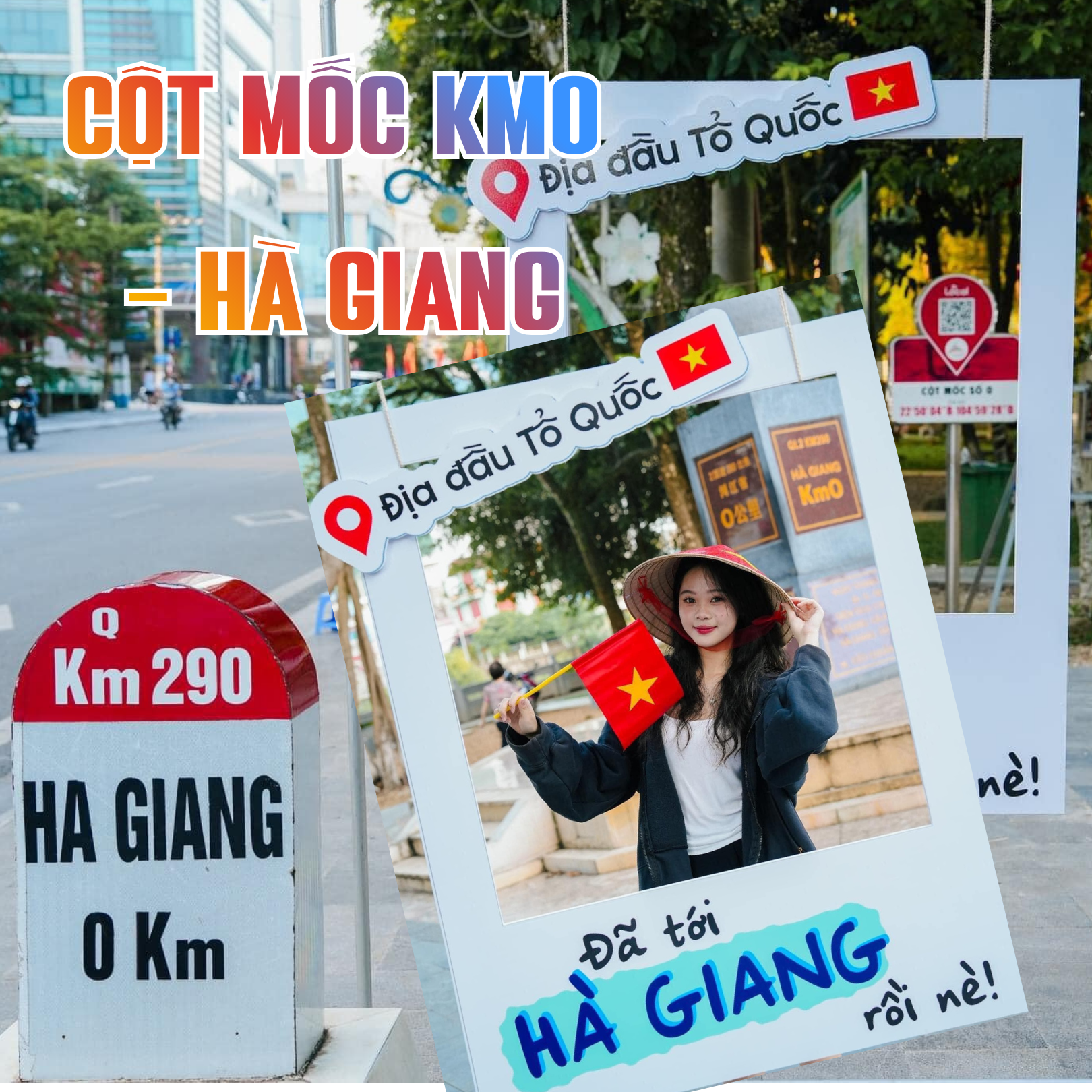 Chụp hình lưu niệm Cột mốc số 0 - đánh dấu điểm khởi công của con đường Hạnh Phúc nối Hà Giang và 4 huyện vùng cao nguyên đá