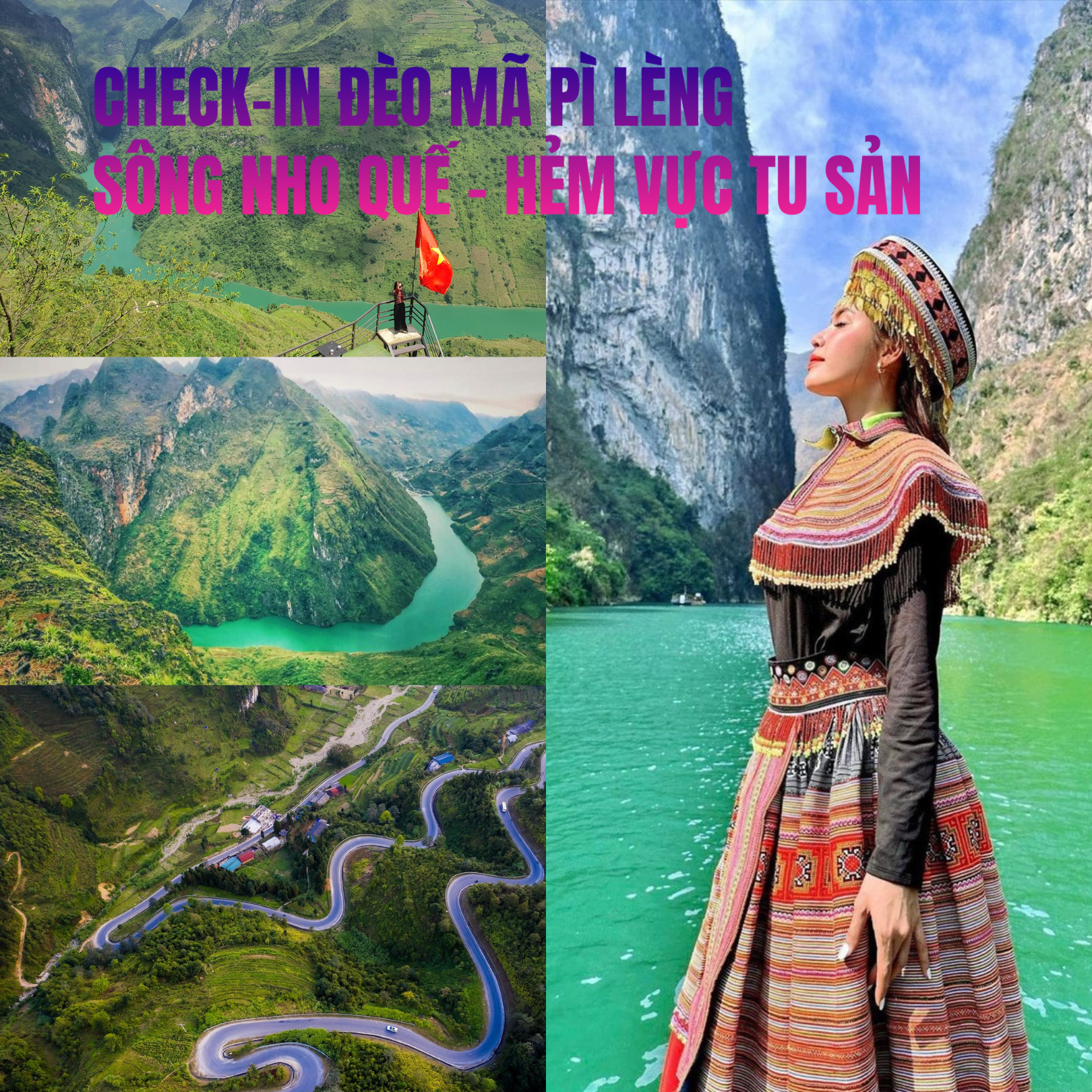 00h30: Hướng dẫn viên Đôi Cánh Việt Travel đón Quý khách tại điểm hẹn, kiểm tra lại giấy tờ bay, hỗ trợ sắp xếp hành lý lên xe. Khởi hành đi Sân bay Tân Sơn Nhất (TP. HCM). 04h00: Đoàn đến nhà ga T3 đi trong nước - SB Tân Sơn Nhất làm thủ tục đi Hà Nội trên chuyến bay dự kiến lúc 06h10 . 08h10: Đến sân bay Nội Bài. Hướng dẫn viên cùng đoàn làm thủ tục nhận hành lý. Xe đón đoàn đi dùng điểm tâm nhẹ buổi sáng ( Phở + café tại khu vực gần sân bay) . Di chuyển đi Hà Giang. Trưa: Dùng cơm trưa tại nhà hàng địa phương. Tiếp tục hành trình, trên đường dừng chân tham quan: